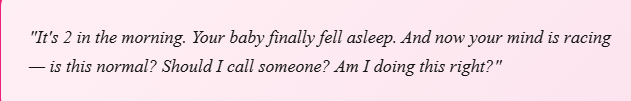 At Naya, we believe every new mom deserves a trustworthy voice in those uncertain moments — one that's available at 2AM, never makes you feel rushed, and always tells you the truth.